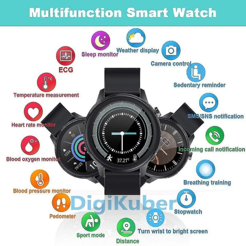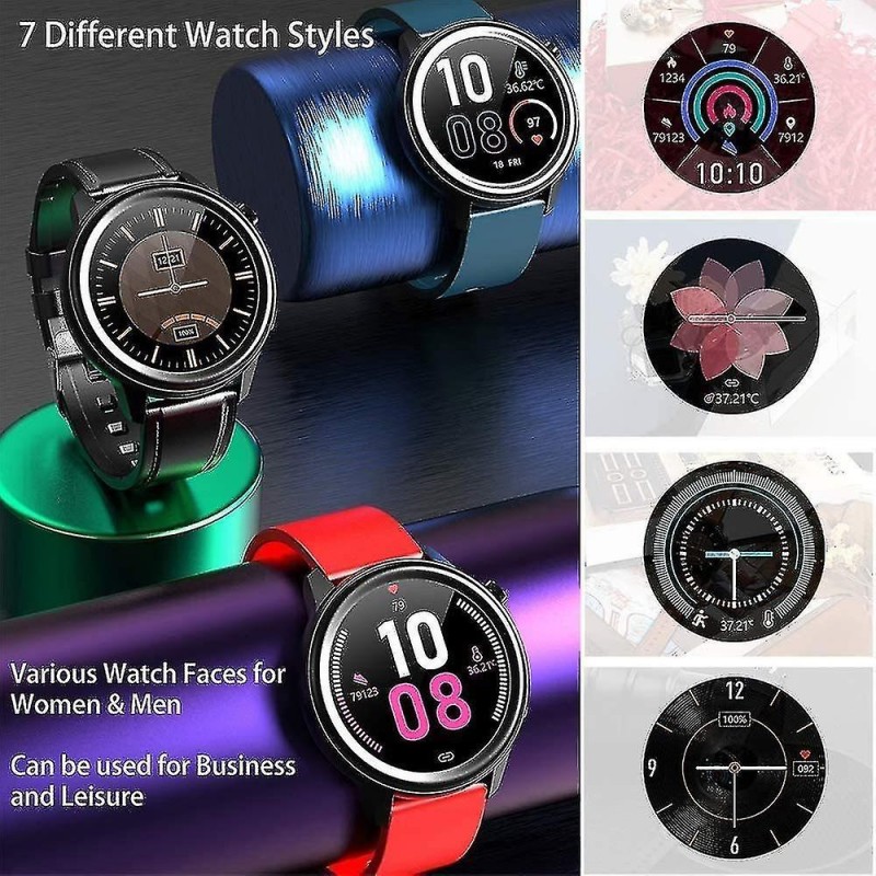 VARIE FUNZIONI come visualizzazione di ora e data, visualizzazione meteo, notifica di chiamate e messaggi, contapassi, registrazione del consumo calorico, registrazione del chilometraggio sportivo, 7 modalità sport, cardiofrequenzimetro, diagnosi ECG / PPG / Ai, controllo della telecamera, monitoraggio del sonno, promemoria sedentario, cronometro, allenamento della respirazione. MONITORAGGIO DELLA TEMPERATURA CORPOREA 24 ORE SU 24 Può misurare la temperatura corporea per 24 ore, i dati sulla temperatura corporea possono essere salvati nell'APP [SmartHealth], puoi monitorare la temperatura corporea e monitorare la tua salute in qualsiasi momento. GESTIONE SPORT E SALUTE Tieni traccia di più misurazioni di dati sportivi e sanitari: modalità multi-sport, contapassi, distanza, calorie; diagnosi ECG / PPG / AI / cardiofrequenzimetro. Presta attenzione alla tua salute in ogni momento. I dati sportivi e sanitari dello smartwatch sono solo di riferimento, ascolta i consigli del medico. MONITORAGGIO DEL SONNO E VISUALIZZAZIONE DEL METEO Funzione di monitoraggio del sonno: quando ti addormenti, lo smartwatch calcolerà automaticamente la qualità del tuo sonno e sincronizzerà i dati con l'app. Puoi conoscere la qualità del tuo sonno. La funzione di visualizzazione del meteo mostrerà le informazioni meteo attuali e la qualità dell'aria. (Nota: è necessario ottenere le informazioni sulla posizione del telefono per visualizzare il meteo.) IMPERMEABILE IP68 E RICARICA MAGNETICA IP68 ha eccellenti prestazioni di impermeabilità e può soddisfare la maggior parte delle esigenze quotidiane. (Nota: non immergerlo in acqua profonda per un lungo periodo. Inoltre, non utilizzarlo in sorgenti termali o bagni caldi.) Ricarica ad aspirazione magnetica, il tempo di ricarica è di circa 3-4 ore, il tempo di utilizzo è di circa 5-13 giorni, in standby 20-40 giorni.